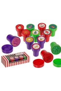 Timbri in plastica, Babbo Natale e amici, 2,5 cm, set da 10, in scatola con finestra
